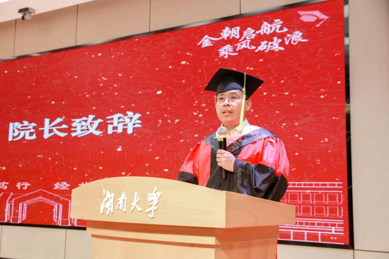 黄红立宣读优秀毕业生名单,向优秀毕业生们表达祝贺,号召同学们以优秀毕业生为榜样,坚定理想信念,担当时代责任,勇于砥砺奋斗。