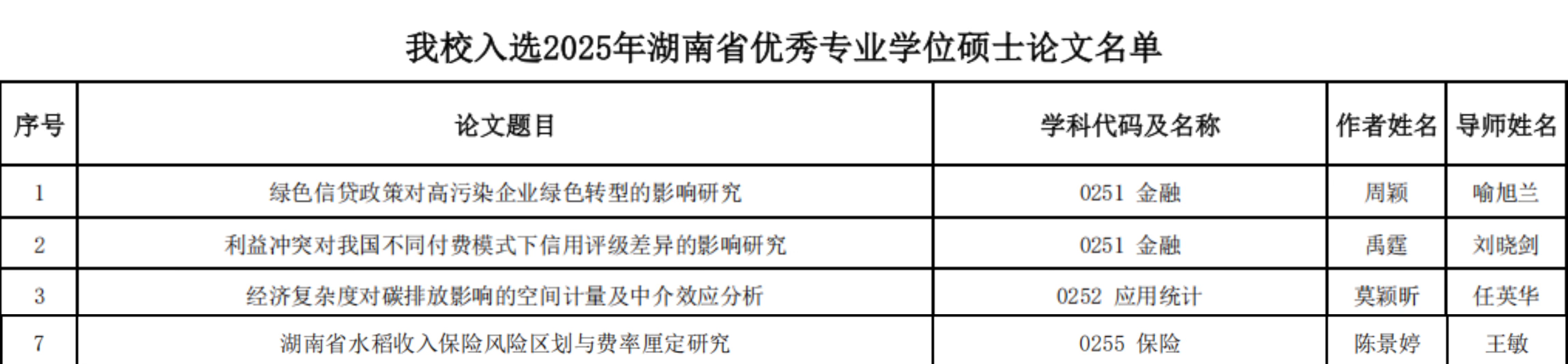 近日,湖南省教育厅公布了2025年湖南省优秀硕士学位论文名单,五楼自拍 共有7篇论文入选湖南省优秀硕士学位论文,这7篇论文分别由五楼自拍 马勇老师、任英华老师、王小燕老师、喻旭兰老师、刘晓剑老师、王敏老师指导。