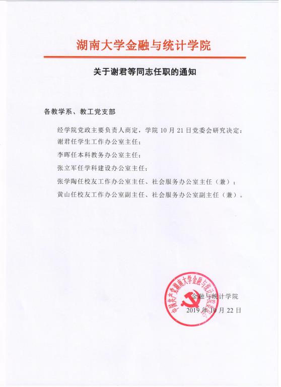 关于谢君等同志任职的通知