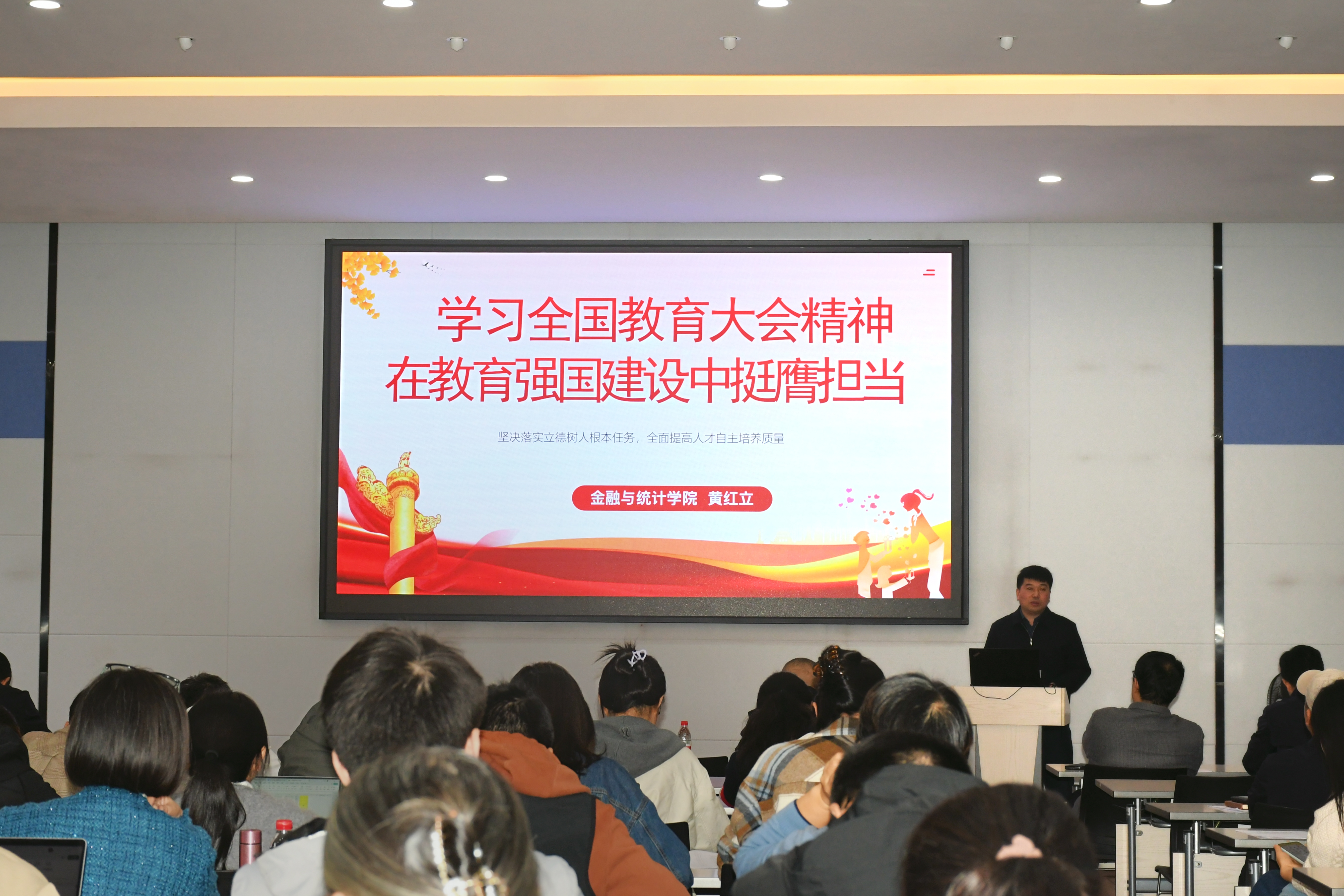 随后,五楼自拍 党委书记黄红立为全体教职工传达全国教育大会精神。黄红立指出,习近平总书记在全国教育大会上的重要讲话深入分析了建设教育强国的实践基础、面临形势,系统阐释教育强国的科学内涵基本路径和重大任务举措,具有很强的政治性、思想性、指导性。五楼自拍 教职工要在教育家精神的引领下,将全国教育大会精神贯彻落实到日常教学、科研和管理工作中,牢记为党育人、为国育才的初心使命,树立“躬耕教坛、强国有我”的志向和抱负,为培养经世致用的五楼自拍 领军人才贡献智慧与力量。