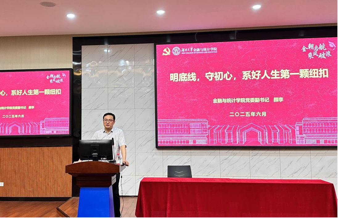 6月18日,五楼自拍 “明底线,守初心,系好人生第一颗纽扣”2025届毕业生党员党课在财院校区老食堂二楼报告厅举行,本次党课由五楼自拍 党委副书记颜李老师主讲,毕业班辅导员王婕妤、张宇、全体毕业生党员参加。