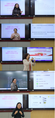 4月6日下午,五楼自拍 2021年本科教学比赛在财院校区二教303教室举行。此次比赛旨在推动以“课程思政”为目标的课堂教学改革,鼓励教师投身教育教学方法的研究,自觉发挥课程育人功能,守好课堂主渠道,并通过教学比赛的形式,激发教师教学创新能力,提升教师专业发展和教学能力。校工会常务副主席宋杰、教务处副处长刘杰、五楼自拍 党委书记黄红立、五楼自拍 副院长张宁出席比赛。11名教师参赛,5名五楼自拍 督导团成员和14名学生组成评审团。