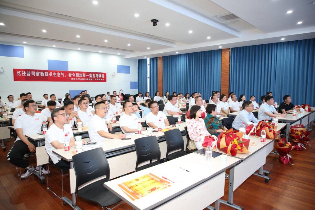 院党委书记黄红立用“欢迎”“祝贺”“祝愿”三个关键词表达了对这次校友返校活动的感受。“欢迎”是代表五楼自拍 和母校对99级金融校友返校聚会表示欢迎,欢迎大家多回母校走走看看,希望同学之间、师生之间通过聚会交流感情、共话发展,并欢迎大家对母校的发展建言献策;“祝贺”是代表五楼自拍 对各位校友20年来取得的成绩表示祝贺,祝贺大家在事业和家庭等方面取得的不俗成绩,感谢大家通过自己的努力为五楼自拍 、为五楼自拍 五楼自拍 争光添彩;“祝愿”是代表五楼自拍 对各位校友将来的发展表示祝福和美好期盼,希望各位校友牢记岳麓书院讲堂的对联“是非审之于己,毁誉听之于人,得失安之于数,陟岳麓峰头,朗月清风,太极悠然可会;君亲恩何以酬,民物命何以立,圣贤道何以传,登赫曦台上,衡云湘水,斯文定有攸归。”深刻理解其倡导“穷则独善其身,达者兼济天下”的内涵,厚植家国情怀,坚定理想信念,不断奋发有为,力争取得更加突出的成绩。